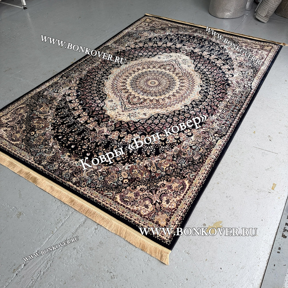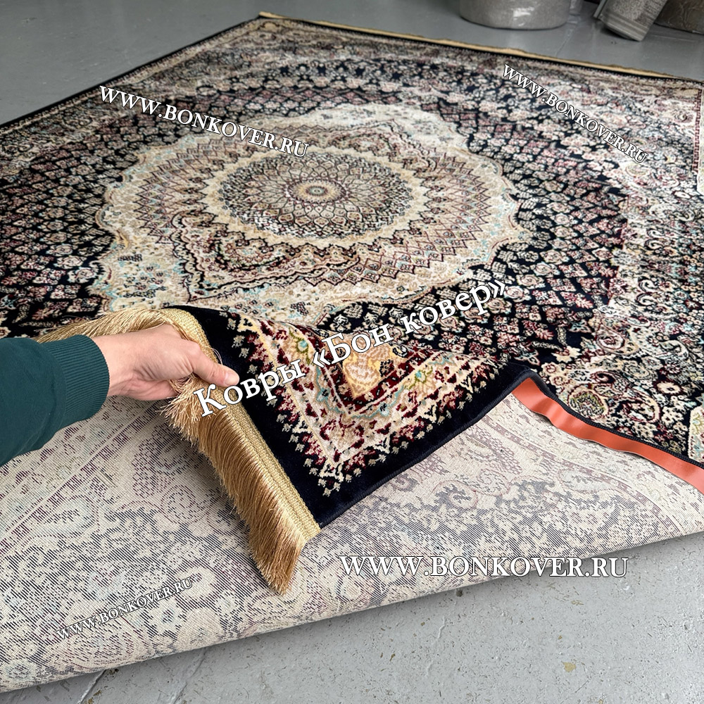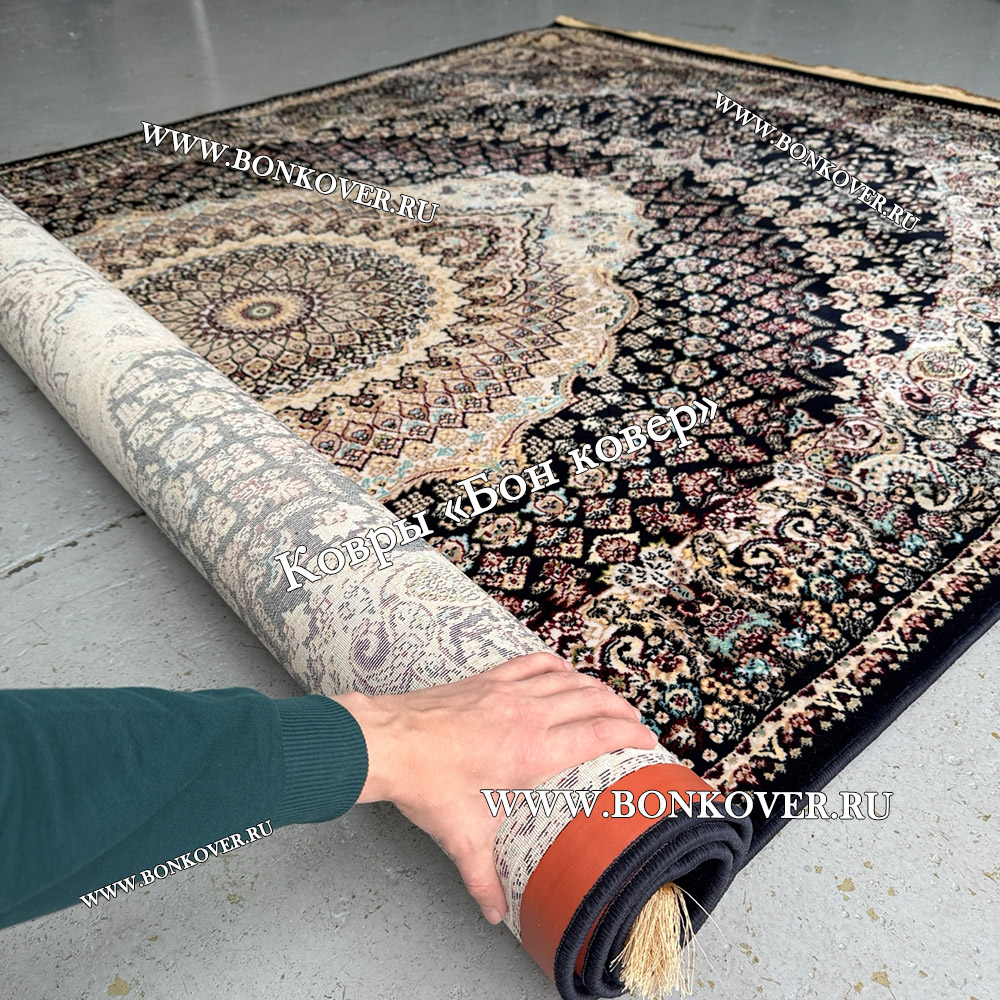 Долго искали смотрели на разных сайтах , в итоге ваш ковер приглянулся больше всего . Доставили в рулоне на следующий день , оплатили при получении . Идеальный вариант , цвет темно синий с переливом - рисунок очень выйгрышно смотрится !