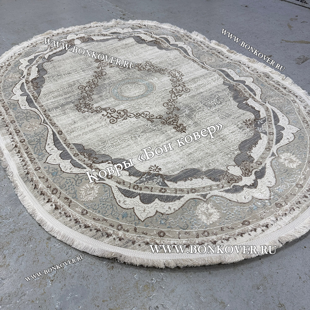 Ковер Турция Для Гостиной Дизайн 90 Серый с Голубым Овал станет привлекательным дополнением интерьера, оформленного в современном или классическом стиле. Мягкое, но прочное, ковровое изделие обеспечивает тепло- и шумоизоляцию, отличается длительным сроком эксплуатации, пожаробезопасностью, экологичностью и высокой износостойкостью, является отличной гарантией от повышенной влажности в комнате и утеплителем для холодного пола. Благодаря качеству материалов, ковер не деформируется, сохраняет форму под тяжестью предметов мебели. За его поверхностью легко ухаживать.