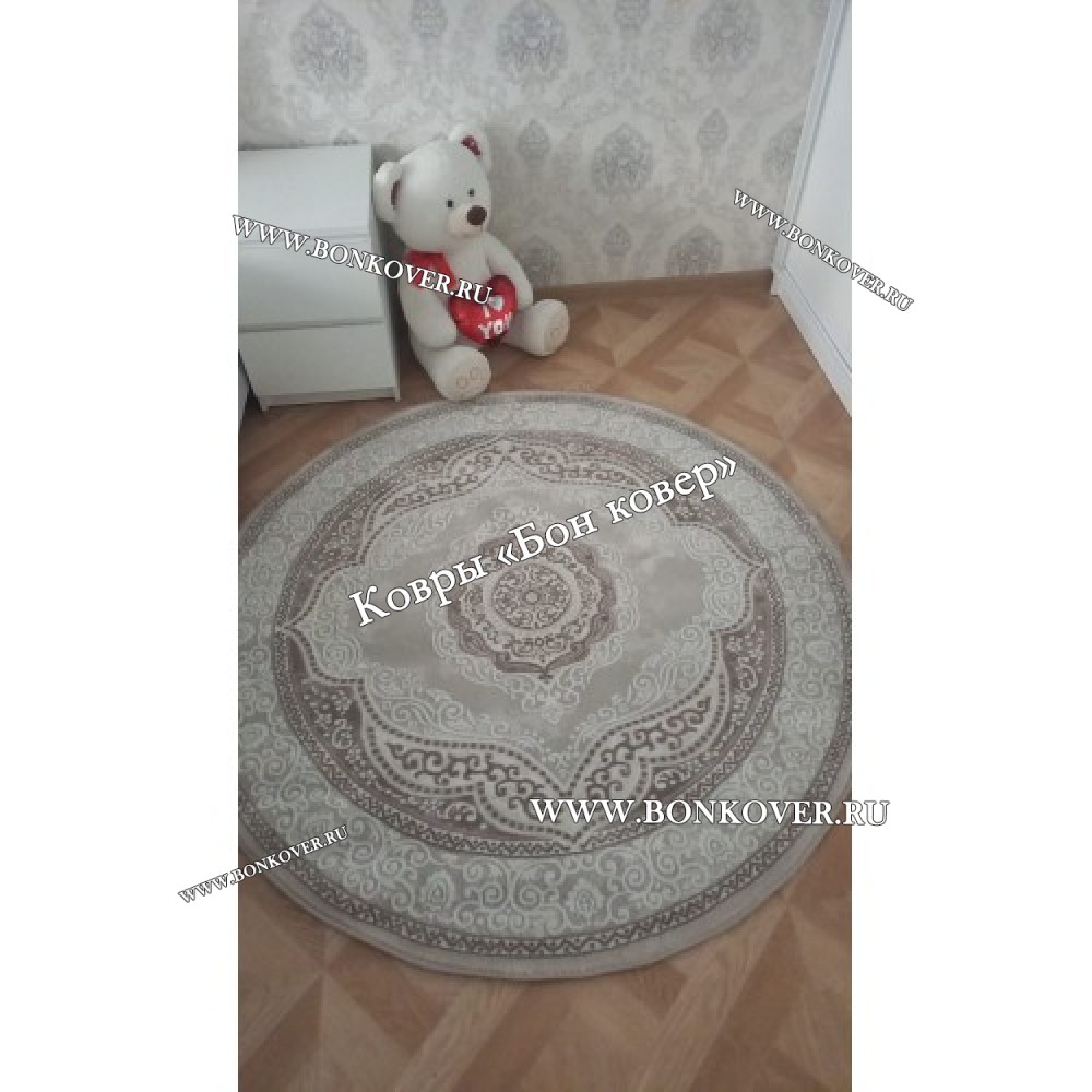 Изящный Круглый ковер в гостиную дизайн 02 Бежевый наполняет интерьер гостиной теплом и уютом, гармонично сочетает в себе изящество и красоту. Он выполнен из высококачественного сырья, комфортный и долговечный.