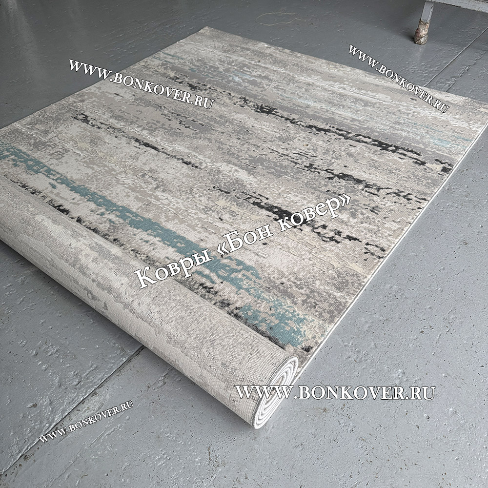 Турецкий Ковер Для Гостиной Арт 30037 Серый с Голубым